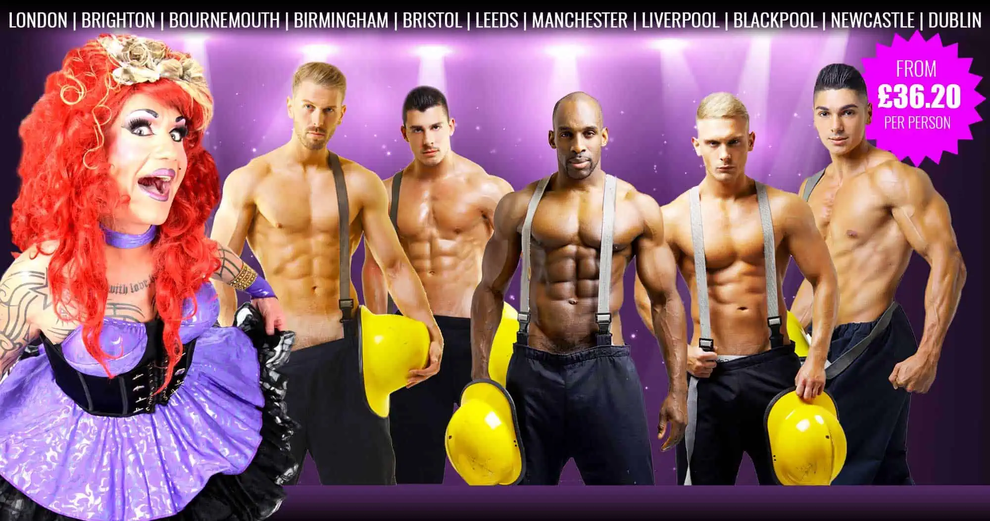 By bringing together the finest male strippers with exquisite physiques, a funny and oh so naughty drag queen, stunning production values along with food, drink and dancing, we’ll deliver the best girls night out ever!